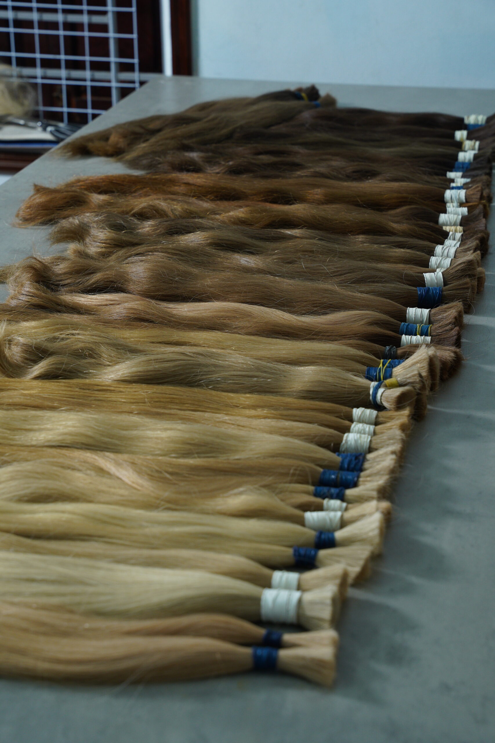 Our process covers raw hair sourcing (in Vietnam and nearby regions), precise colour blending, handcrafted finishing and comprehensive quality control. Advanced chemical processing and bleaching are entrusted to Specialist Russian technicians renowned for their expertise.